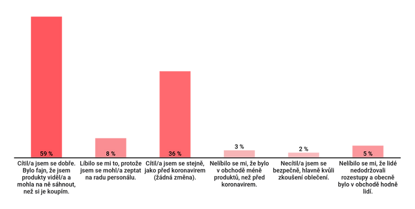 Naopak uživatelé zvyklí na kamenné obchody se do nich po karanténě vrátili a většina z nich necítila žádné změny a cítili se v nich stejně jako před koronavirem.
